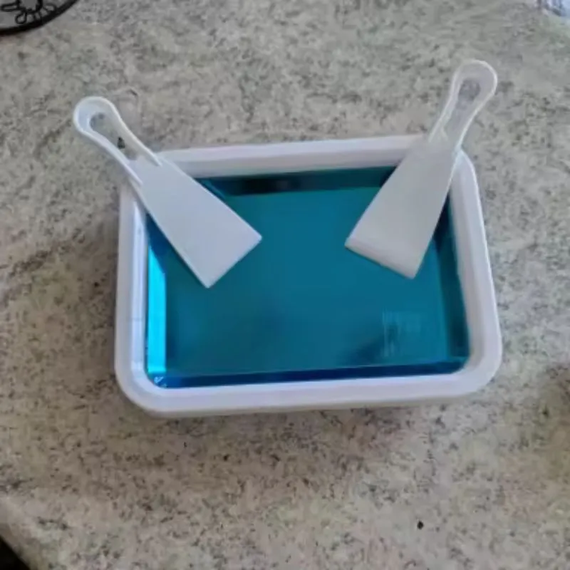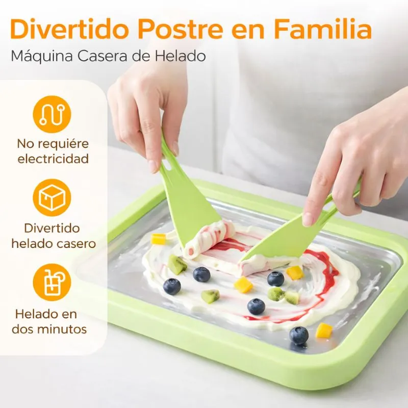 ✅ Solo debes colocar la bandeja en el congelador durante al menos 10–12 horas. Luego vierte la mezcla (leche, yogur o jugos), añade tus ingredientes favoritos y extiéndelos. En pocos minutos podrás formar y disfrutar tus propios rollos de helado.