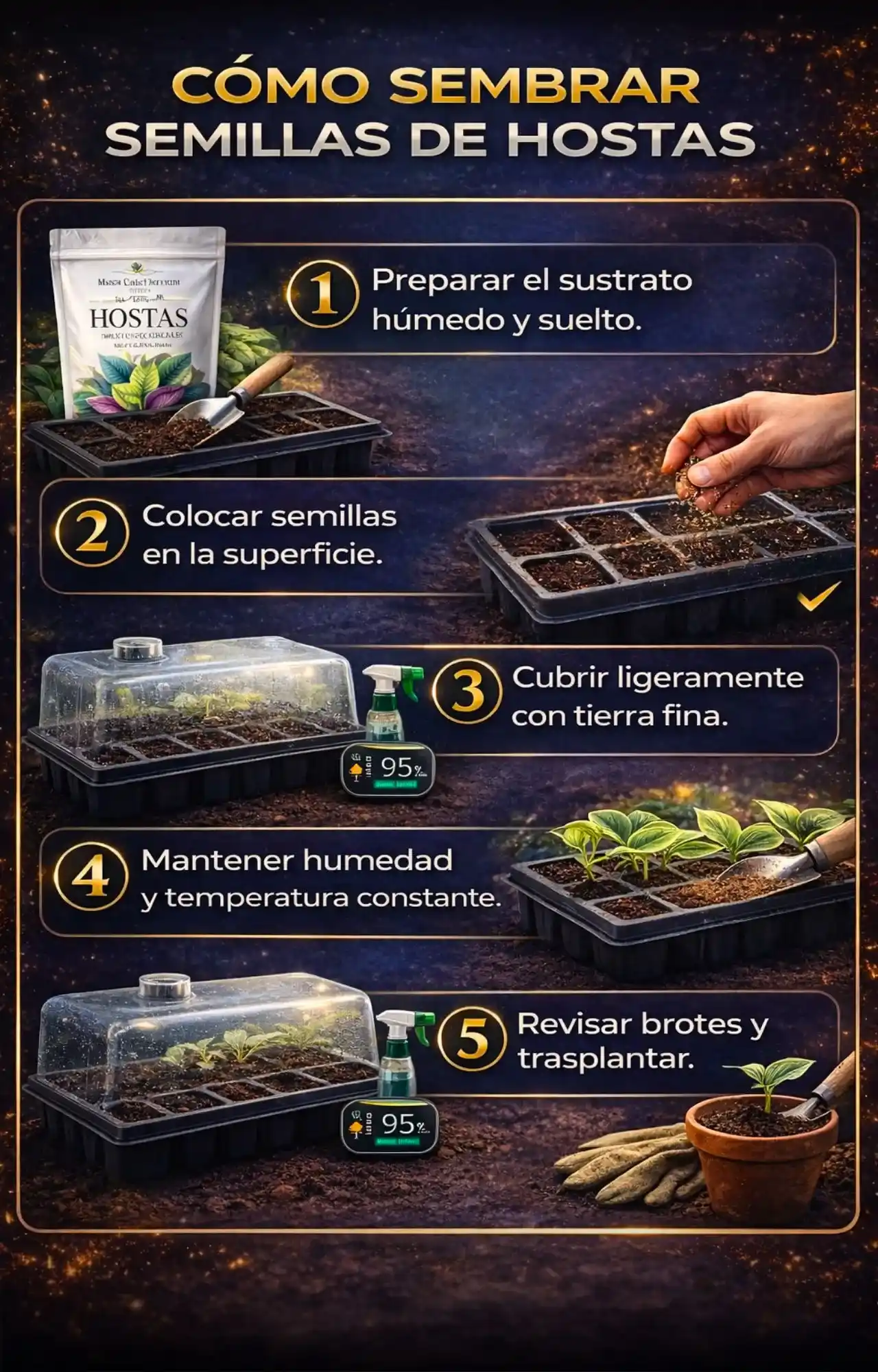 ✅ Las semillas de hosta suelen germinar en aproximadamente 2–4 semanas cuando se mantienen a temperaturas entre 18–24 °C (65–75 °F) y el suelo está húmedo pero con buen drenaje.